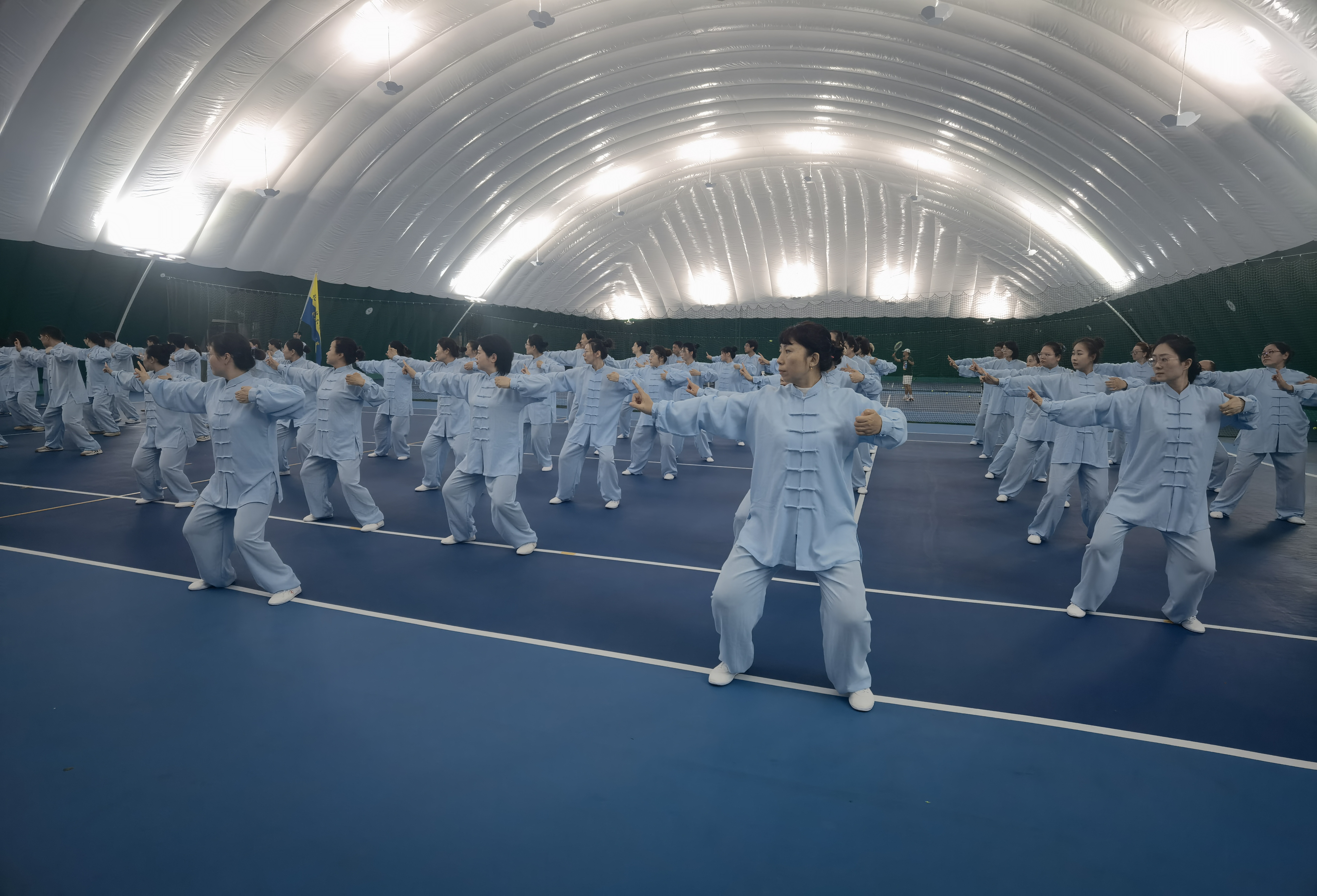 比赛场上,后勤分工会的队员们精神饱满,着装统一。伴随着悠扬舒缓的音乐,大家舒展身心,动作行云流水,将八段锦“意动行随、神形兼备”的独特韵味展现得淋漓尽致,充分展现了后勤职工积极向上、团结协作的精神风貌和严谨细致的工作作风。