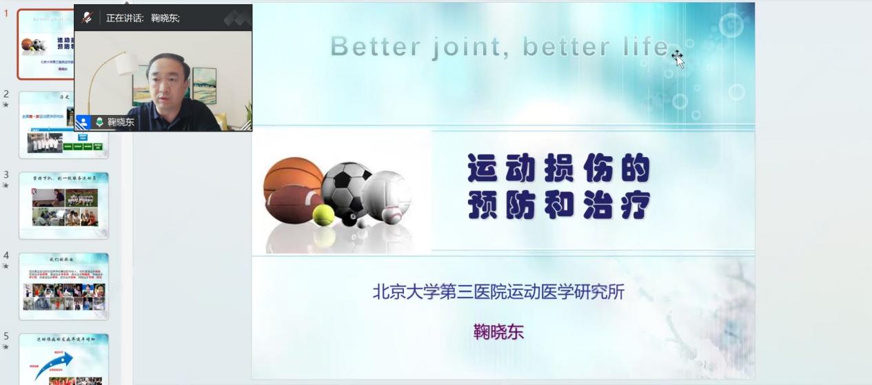为了在运动会前夕提升教职工运动安全意识与科学防护能力,4 月17日下午,校工会特邀北京大学第三医院运动医学科主任医师鞠晓东,开展 “快乐运动,无伤完赛” 运动损伤防护线上专题讲座。