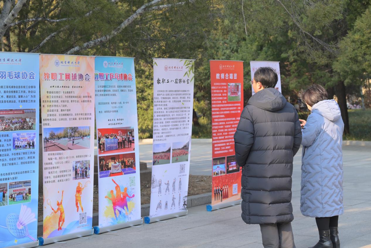 现场还安排了教职工文体协会招新路演,14个协会的易拉宝整齐排列,每个协会都有一位老师现场讲解,吸引教职工驻足咨询。老师们当场扫码报名,只为结识志同道合的伙伴,在繁忙工作之余切磋交流,培养兴趣、丰富业余生活。