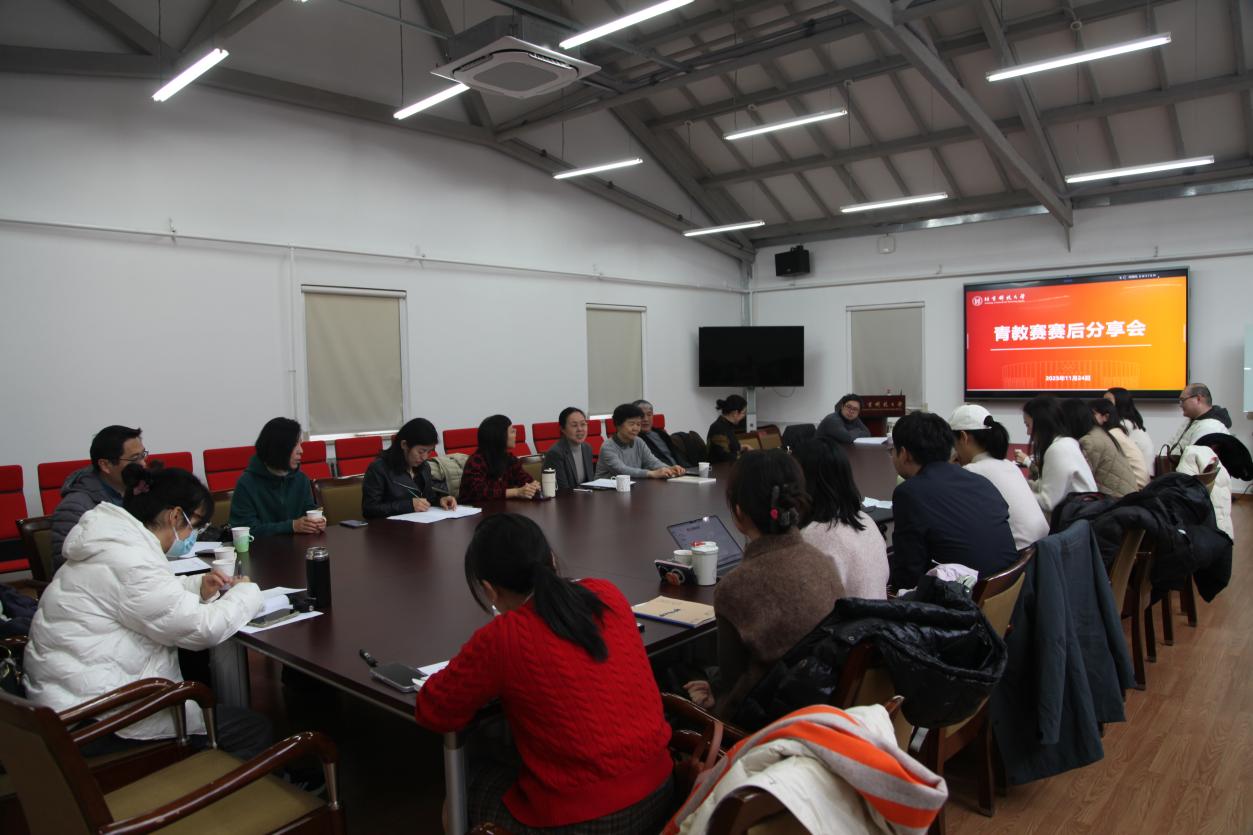 分享会上,北京市青教赛参赛选手对所有为备赛提供帮助的老师表达了真挚的感谢,是大家的支持和无私付出,让选手们始终感受到集体的温暖和力量。他们回顾了从校赛到市赛的备赛历程,从教学设计优化、课堂展示打磨、临场应变技巧等方面展开分享,既有无数个日日夜夜的坚持,更有在指导教师悉心指导下突破瓶颈的领悟。“备赛过程是教学能力系统性提升的过程,每一次试讲后的点评,每一个环节的完善,都让我对‘好课堂’有了更深的理解”,参赛选手的分享引发了在场教师的强烈共鸣。
